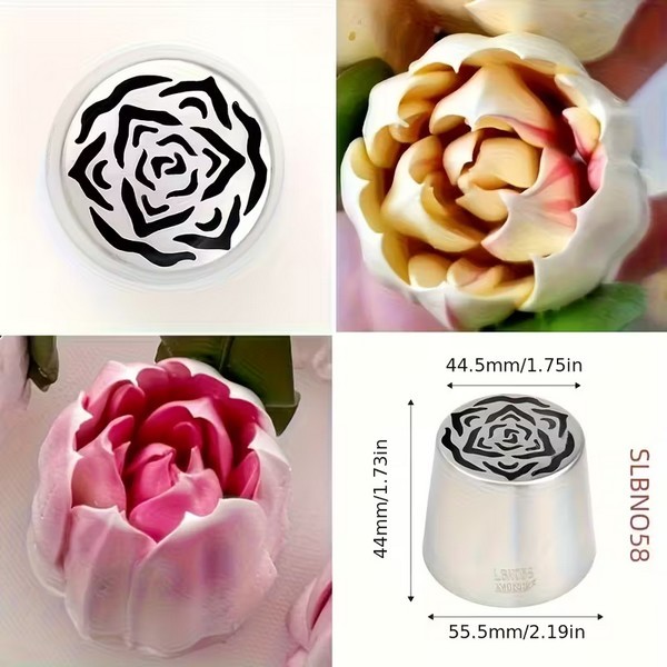Très grande Douille à pâtisserie pour fleur 3 dimensions. Cette nouvelle technologie de douille vous permettera de créer des fleurs en 3 dimensions en une seule poussée de crème au beurre tout en donnant un fini professionnel et élégant! Dû à la très grande taille de cette douille, aucun adaptateur ne convient.