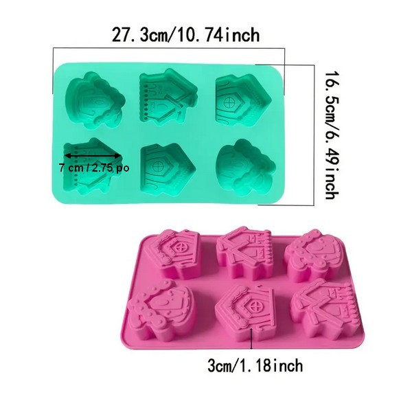 Moule en silicone avec 3 modèles de maisons style pain d’épices. Parfait pour mouler pâte à biscuits, chocolat ou pâte à cake pops. Pour la pâte à biscuit, après avoir rempli vos cavités, réfrigérez, démoulez et cuisez pour créer de petites maisons gourmandes, aussi jolies que faciles à réussir.