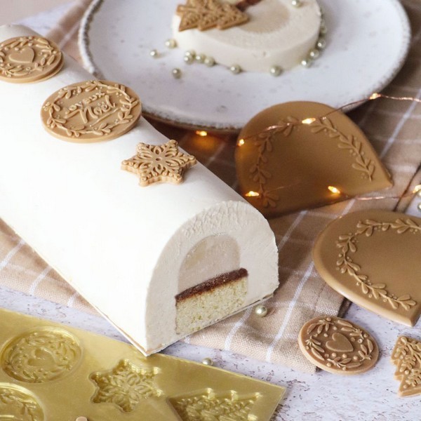 Ce moule en silicone est idéal pour créer facilement de jolies décorations en chocolat à disposer sur vos bûches, gâteaux et desserts de fêtes. Sa matière souple permet un démoulage facile et précis. Il offre plusieurs formes festives — étoiles, embouts de bûche et sapins — pour embellir vos créations en un clin d’œil.
