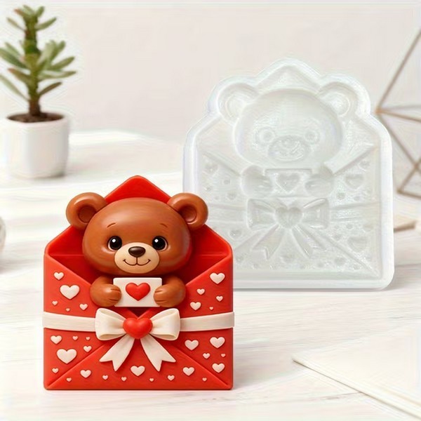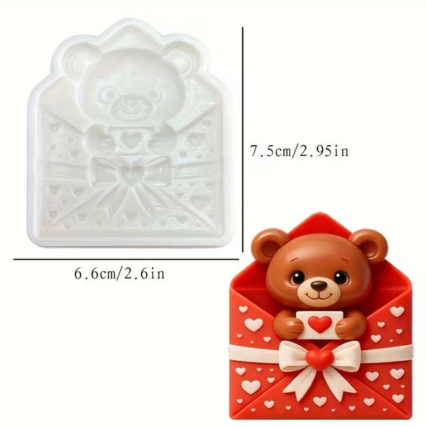 Apportez une touche de tendresse à vos créations avec ce moule en silicone Message d’Amour. Il permet de réaliser une délicate enveloppe ornée de petits cœurs, révélant un adorable ourson tenant une mini enveloppe en forme de cœur. Idéal pour fondant à rouler, pâte à sucre, pâte à biscuit, chocolat ou décorations gourmandes pleines d’émotion. Voir démonstration ici